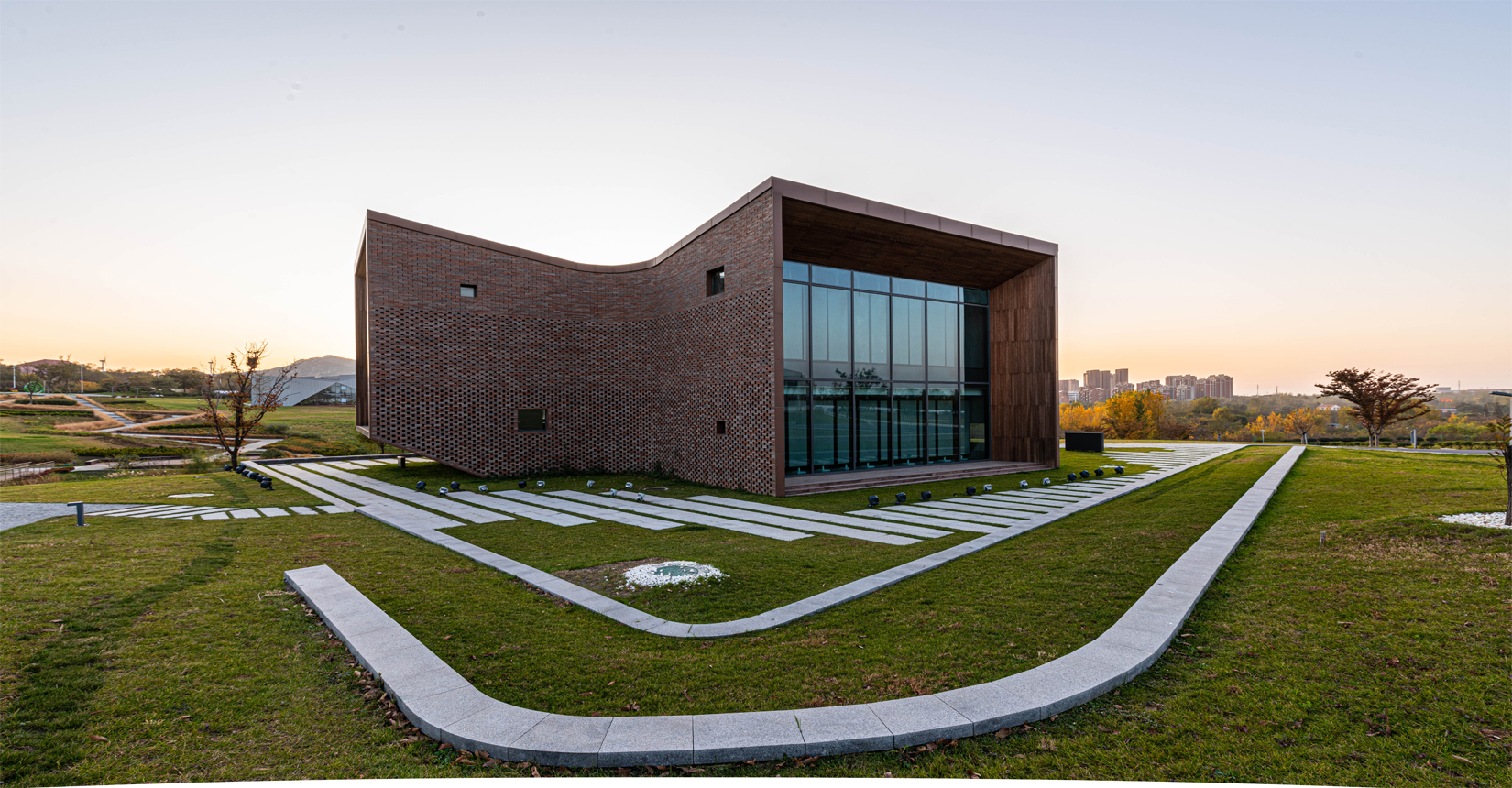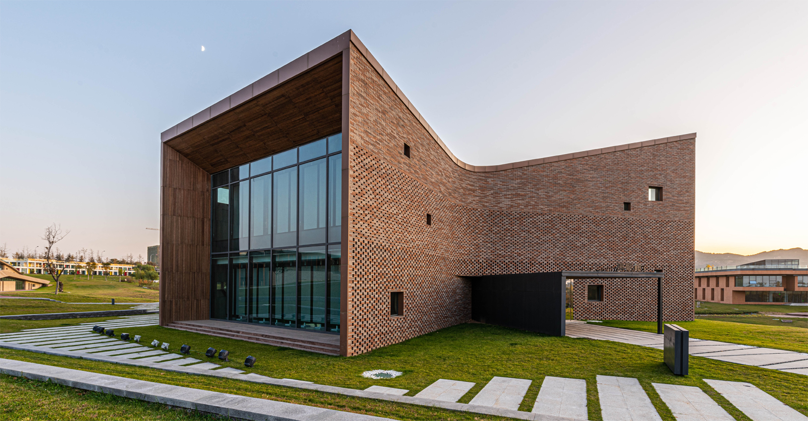 建筑南側(cè)設(shè)置次要出入口,并與水流形成互動。建筑立面材質(zhì)采用精致的磚材拼面,屋頂采用微微揚(yáng)起的處理手法;穩(wěn)重且不失變化。