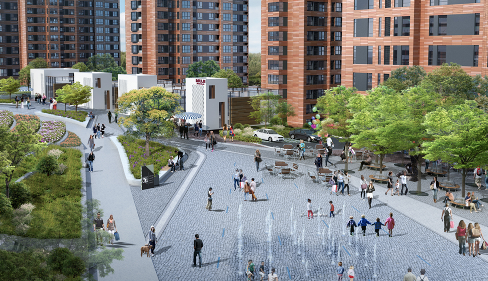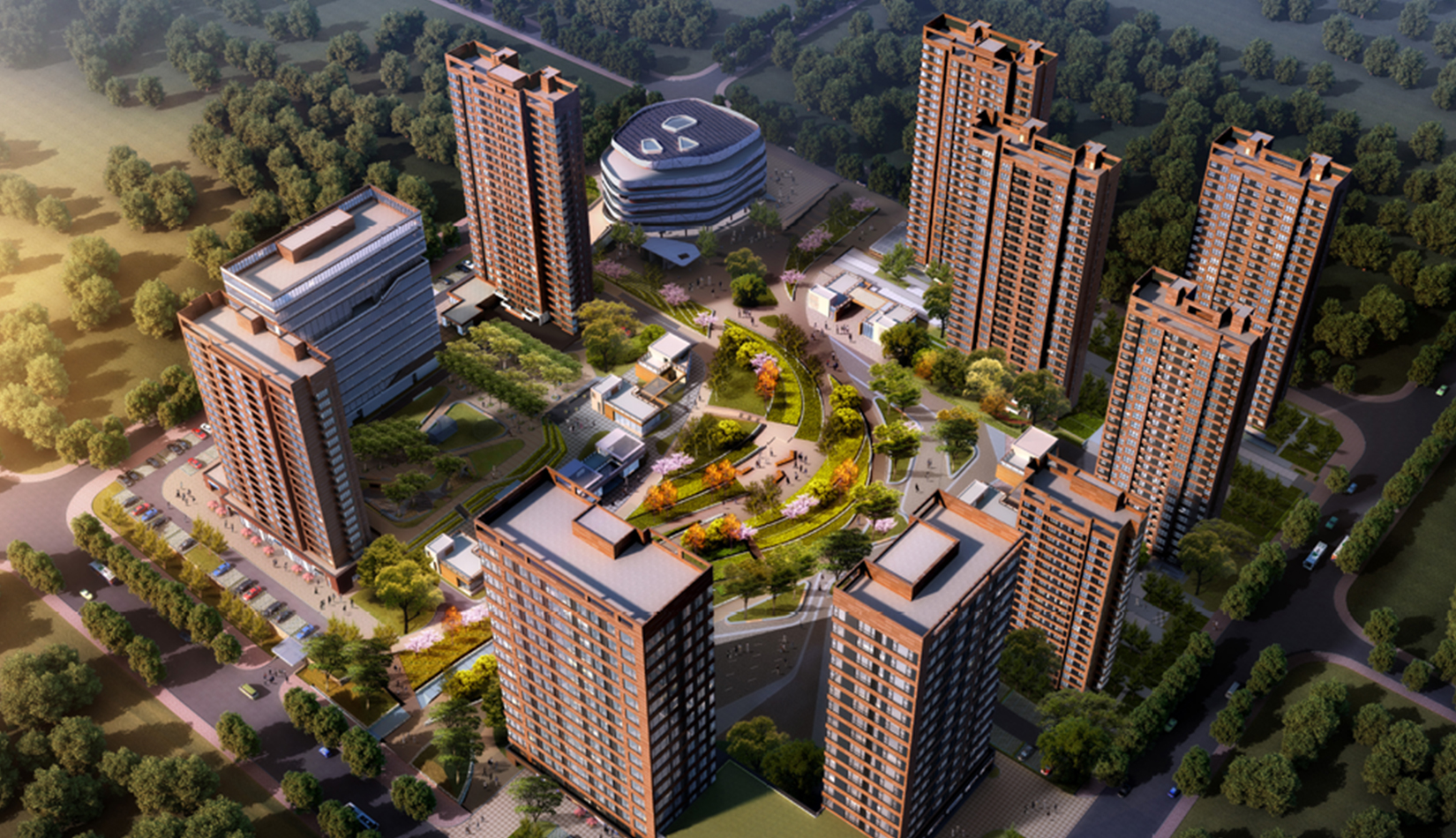 規(guī)劃布局在現(xiàn)有景觀基礎(chǔ)上進(jìn)行延伸,在重要景觀帶上設(shè)置公共功能,造型與現(xiàn)有德國(guó)中心呼應(yīng),靠近中間廣場(chǎng)的混合住宅設(shè)計(jì)中融入綠色理念,既達(dá)到景觀帶到建筑群組的滲透,又達(dá)到建筑內(nèi)部的滲透,真正做到人與自然融合,建立了一條“城市紐帶”,利用周邊現(xiàn)有資源(河洛埠水庫(kù)),通過連橋、綠地和廣場(chǎng)將不同功能,不同高度的公共區(qū)域串聯(lián)起來,從而形成一個(gè)結(jié)構(gòu)明晰,功能復(fù)合又互通互聯(lián)的文化交流城。