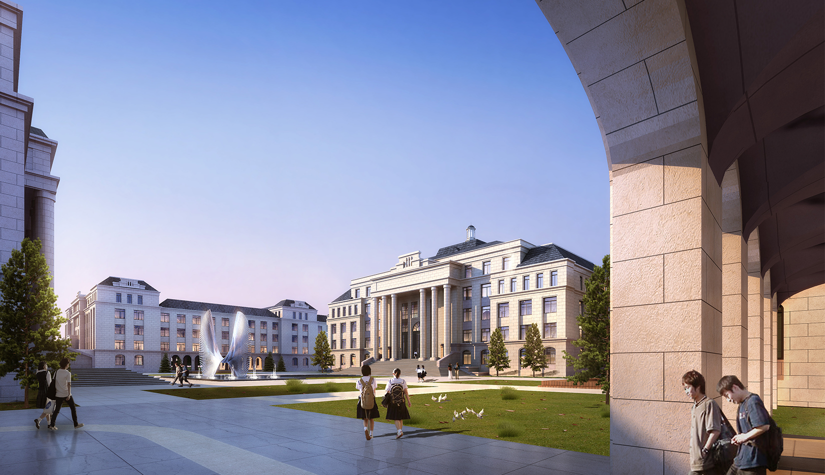 景觀設(shè)計引用了《禮記聘義》中對玉的六大特征:“禮”“知” “樂” “信”“義”“仁”作為景觀主題植入學校各個重要空間。