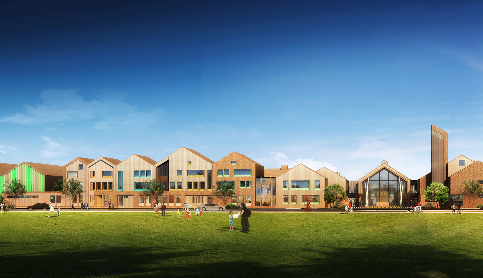 該項(xiàng)目設(shè)計(jì)以“陽關(guān)小鎮(zhèn)”為設(shè)計(jì)概念,采用“城鎮(zhèn)”規(guī)劃布局,通過引入街道、廣場(chǎng)、庭院等元素,將校園空間打造為小鎮(zhèn)場(chǎng)景,讓學(xué)生感受城市氛圍及生活氣息。