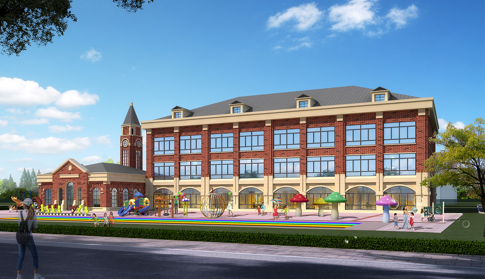 項(xiàng)目在設(shè)計(jì)中從幼兒特點(diǎn)考慮,通過活動(dòng)空間、明快色彩以及建筑造型的展示,意在創(chuàng)造符合幼兒心理的童話世界。