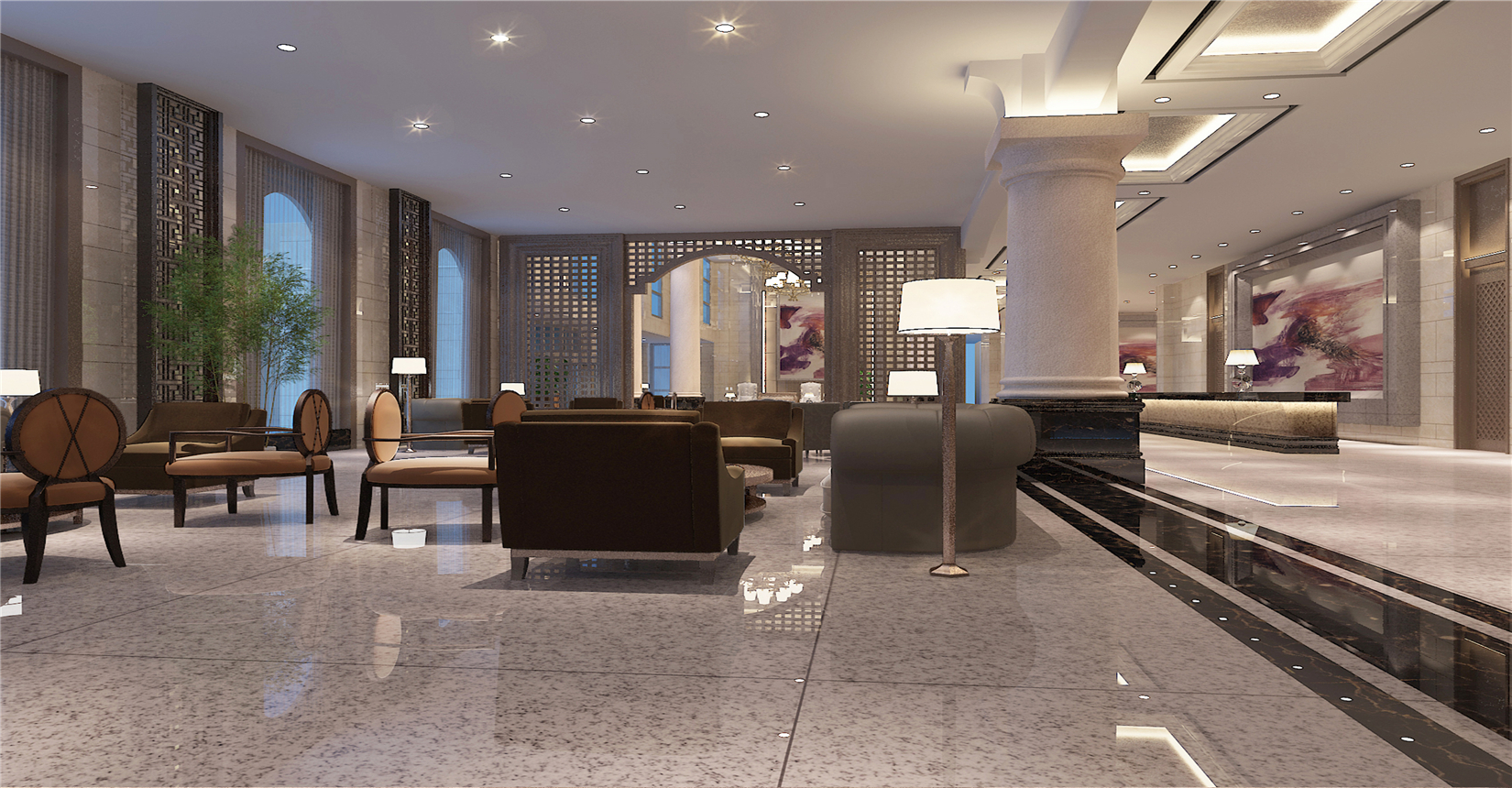 在造型語言上以經(jīng)典的裝飾語言表達了空間節(jié)奏,材質(zhì)色調(diào)的理性而精致。與整體學(xué)院風格互為潛透、風格統(tǒng)一、莊重簡潔,力求體現(xiàn)創(chuàng)新、高端,營造卓越的學(xué)術(shù)氛圍。